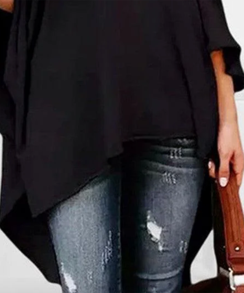 Un top moderno che unisce audacia ed eleganza. Il suo collo alto valorizzante e il motivo artistico regalano un tocco originale che si distingue in ogni occasione. Facile da indossare con un jeans o un pantalone elegante, diventa subito un capo essenziale del guardaroba.